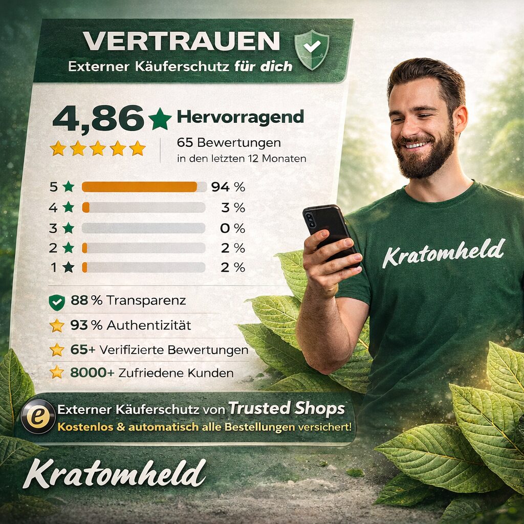 Wir sind aktuell der einzige Anbieter in Deutschland, der Kratom Extrakte mit einem laborbestätigten Mitragynin-Gehalt von 50 % anbieten kann – höchste Qualität für höchste Ansprüche.